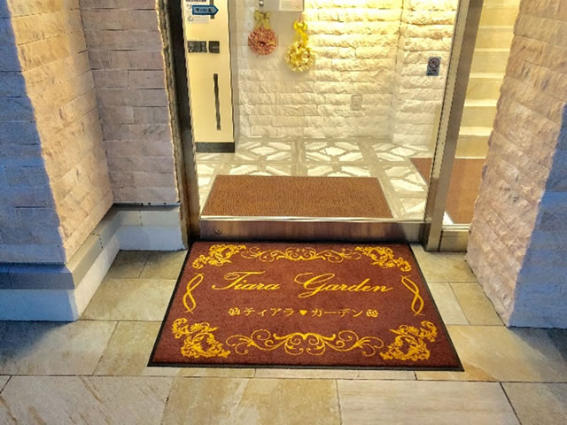 玄関とエレベーター前のマットがお揃いなので、動線のように自然とエスコートされます。そしてエレベーターのドアが開くと、そこにはまたお揃いのマットが出迎えてくれます。素敵なおもてなしに皆さんがきっと驚かれるはずですね。