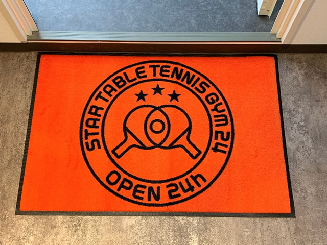 「この度はスター卓球ジム24オリジナルマットを作製していただきありがとうございました。発色が良く、ロゴデザインも大きく目立つため、店舗入口のアクセントになっております。会員様やスタッフからも大変好評です。定期クリーニングサービスが利用できる点も大変助かります。」