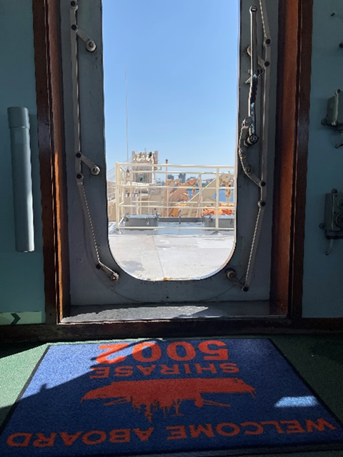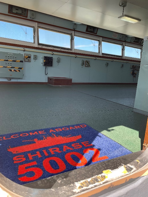 13年前に退役し現在は船橋港で係留しているそうです。現役時代は南極に接岸するまでには何メートルもある海氷を割りながら南極海を航行してきた船内にSHIRASEのロゴ入り玄関マットをご用意させていただけたことを大変嬉しく思います。