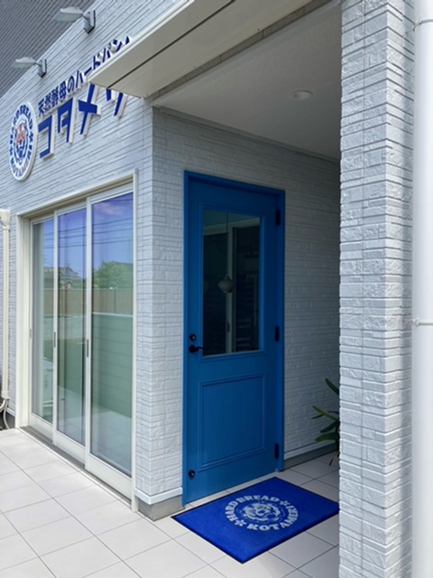 パン屋さんの開店に合わせてオリジナル玄関マットをご注文いただきました。青色に白抜きのロゴがとても新鮮で清潔な印象です。ドアをはじめエクステリアによく馴染んでいます。