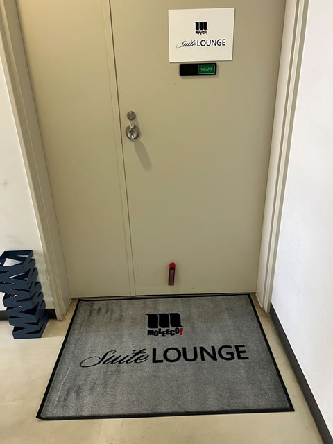 東京都のお客様より企業ロゴを入れた玄関マットをご注文いただきました。出入口の幅に合わせてサイズオーダーにてご依頼いただきましたが、ぴったり納まったようで大変ご好評いただいています。モノトーン系の配色で、シンプルかつお洒落な印象のマットに仕上がりました。