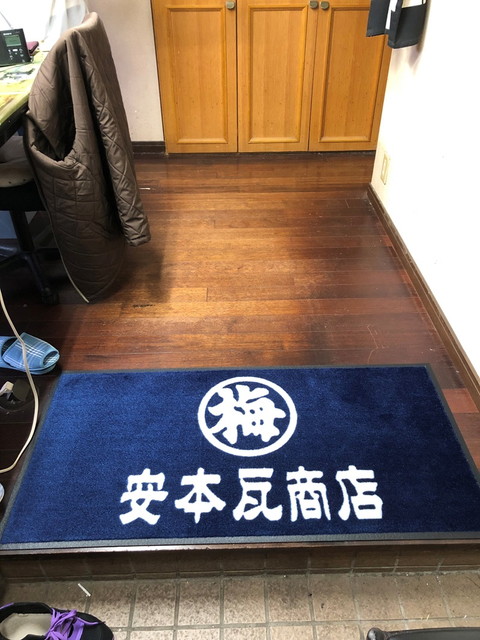 瓦商店様より大きく店名を入れたオリジナルマットをご注文いただきました。ロゴと店名の配置でお悩みのようでしたので、事前にいくつかレイアウトをご用意させていただき、その中からご選択されました。