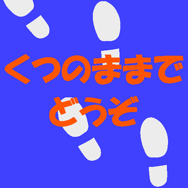 500x500㎜のタイルカーペットに「くつのままでどうぞ」のメッセージを入れたデザインでご注文いただきました。