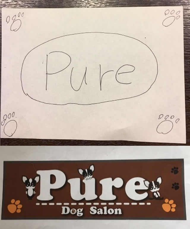 今回は、手書きの絵と書体がわかるものをお送りいただきましたので、そこから仕上がりイメージをご用意させていただきました。